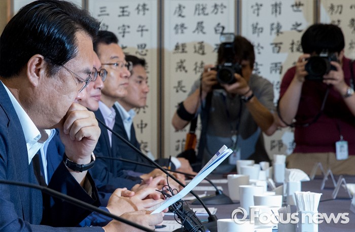 (서울=포커스뉴스) 9일 오전 서울 여의도 국회 귀빈식당에서 열린 2017년도 예산 당정협의에 참석한 정진석 새누리당 원내대표가 생각에 잠겨 있다.