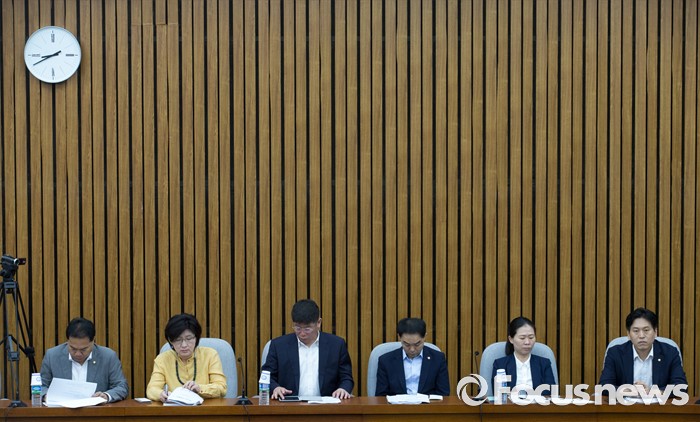 (서울=포커스뉴스) 9일 오전 서울 여의도 국회에서 열린 국민의당 의원총회에 참석한 의원들이 박지원 비상대책위원장의 모두발언을 듣고 있다.