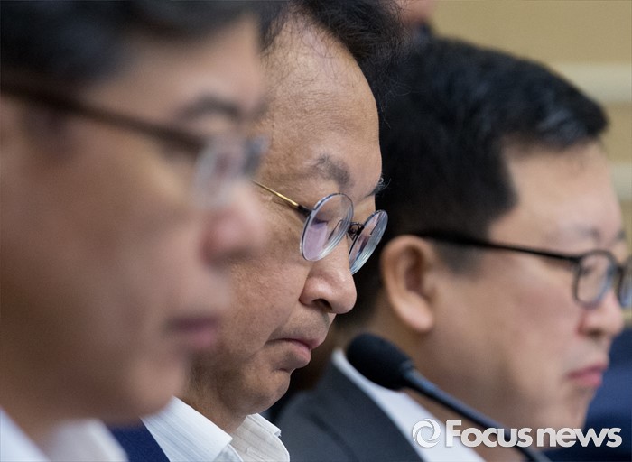 (서울=포커스뉴스) 9일 오전 서울 여의도 국회 귀빈식당에서 열린 2017년도 예산 당정협의에 참석한 유일호 경제부총리 겸 기획재정부 장관이 의원들의 발언을 듣고 있다.
