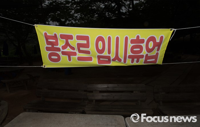 (남양주=포커스뉴스) 9일 오전 경기 남양주 봉주르 카페에 임시휴업 현수막이 걸려 있다.