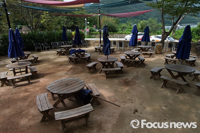 (남양주=포커스뉴스) 9일 오전 경기 남양주 봉주르 카페가 영업허가 취소, 폐쇄로 인해 텅 비어 있다.