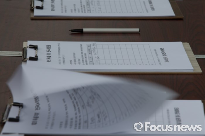 (서울=포커스뉴스) 9일 오후 서울 영등포구 옥시 한국 본사 앞에서 열린 '옥시 최종배상안 발표 규탄 집회'에 가습기 살균제 참사 재발 방지 위한 전국민서명운동 종이가 놓여져 있다.