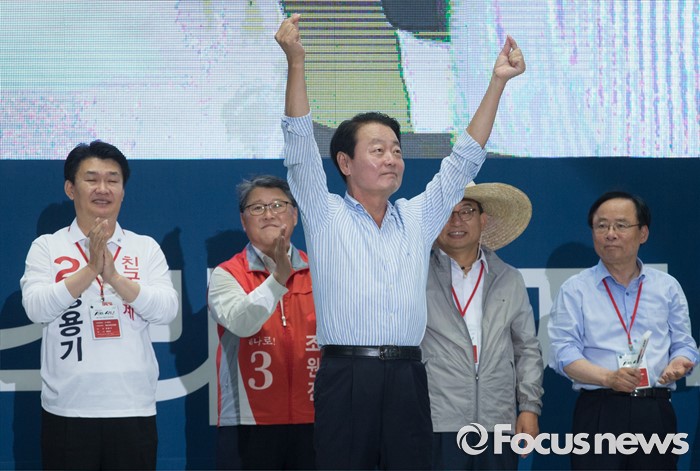 (서울=포커스뉴스) 9일 오후 서울 송파구 잠실실내체육관에서 열린 새누리당 4차 전당대회에 참석한 한선교 당대표 후보가 입장하고 있다.