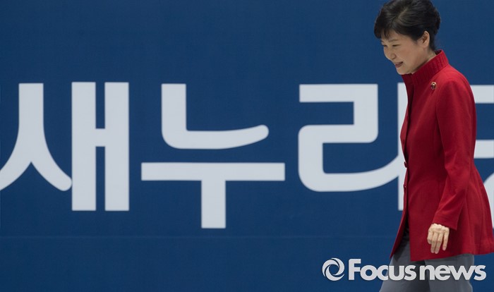 (서울=포커스뉴스) 박근혜 대통령이 9일 오후 서울 송파구 잠실실내체육관에서 열린 새누리당 4차 전당대회에 참석해 축사를 마친 뒤 이동하고 있다.