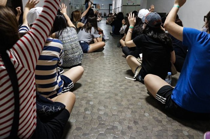 그러나 학교 측은 총장 사퇴를 논의할 단계가 아니라는 입장을 고수하고 있다.9일 오전 서울 마포구 이화여대에서 최경희 총장 사퇴를 요구하며 농성을 벌이고 있는 본관 내부 모습이 공개됐다. 본관에서 이대 학생들이 농성을 이어가고 있다. <사진제공=이화여대언론팀> 2016.08.09 포커스포토
