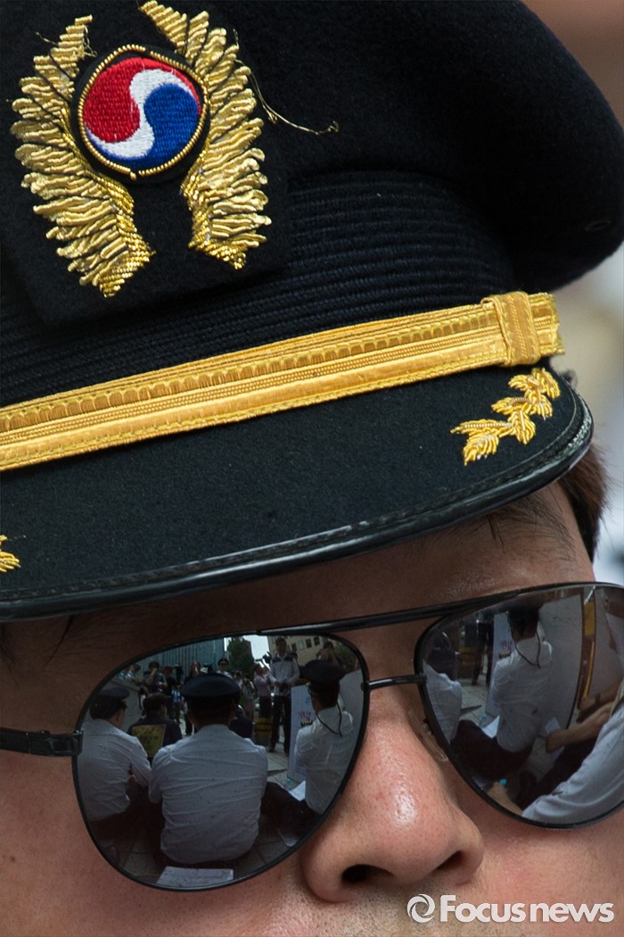(서울=포커스뉴스) 9일 오후 서울 종로구 서울지방국세청 앞에서 대한항공 조종사 노동조합 조합원들이 대한항공 경영정상화를 위한 세무조사 촉구대회 준비를 위해 자리에 앉아 있다.