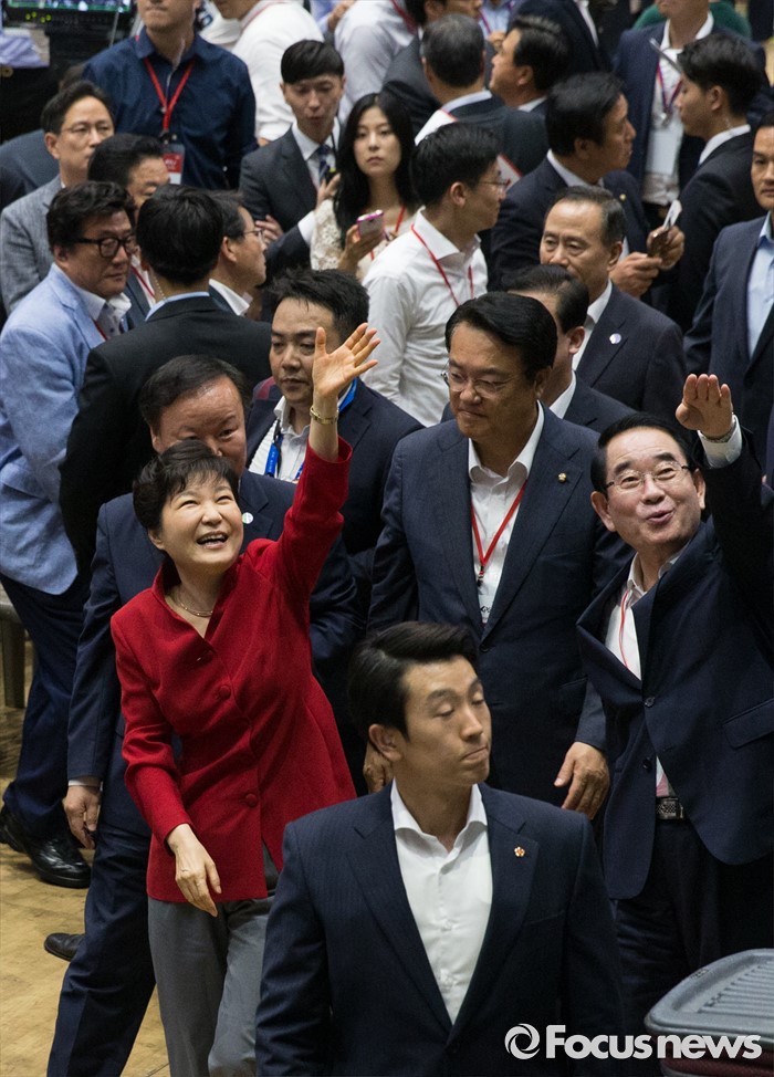 | △ 당원들에게 인사하는 박근혜 대통령 |