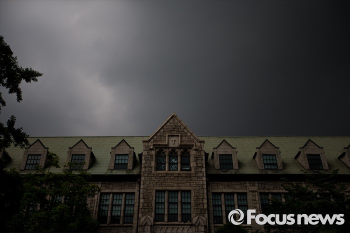 (서울=포커스뉴스) 이화여자대학교 최경희 총장이 학생들이 요구한 '9일 오후 3시까지 사퇴'를 거부한 9일 오후 서울 마포구 이화여자대학교 본관 건물 위로 먹구름이 드리우고 있다.