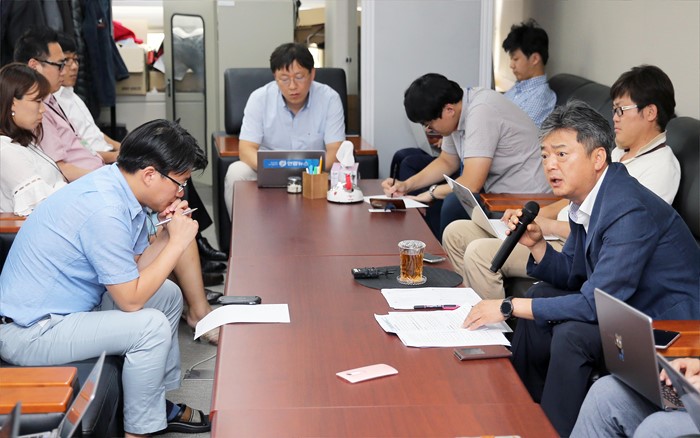 (세종=포커스뉴스) 이인호 산업통상자원부 통상차관보가 9일 오후 세종시 정부세종청사 산업부 기자실에서 금일 오전 개최한 수입규제 대응 간담회에서 논의된 수입규제 동향 및 효과적인 대응방안에 대한 브리핑을 하고 있다. <사진제공=산업통상자원부>
