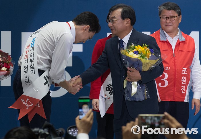 | △ 악수하는 이정현-유창수 |