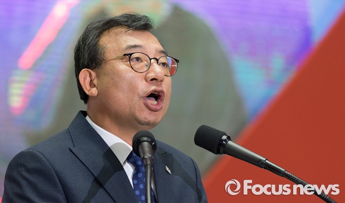 (서울=포커스뉴스) 9일 오후 서울 송파구 잠실실내체육관에서 열린 제4차 새누리당 전당대회에서 당대표로 선출된 이정현 의원이 수락연설을 하고 있다.