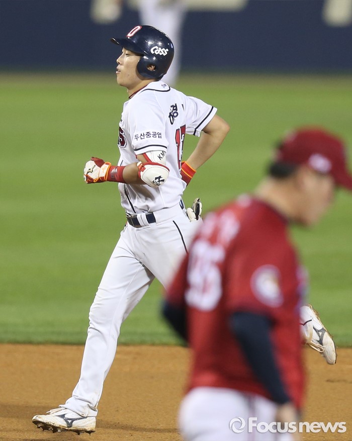 | △ 홈런치고 그라운드를 달리는 두산 허경민 |