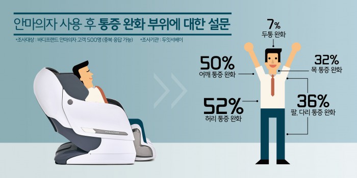 바디프랜드는 최근 자사 안마의자 사용자 500명을 대상으로 실시한 '안마의자의 건강관리 기능에 대한 설문 조사' 결과를 10일 발표했다.