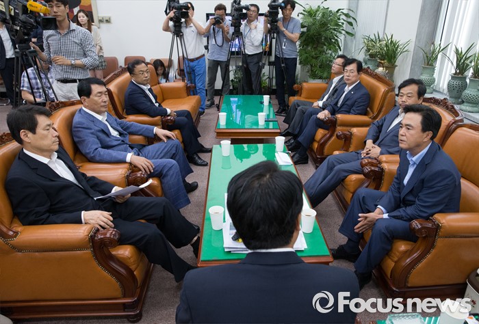 (서울=포커스뉴스) 10일 오전 서울 여의도 국회에서 정진석 새누리당 원내대표가 부정청탁 및 금품등 수수의 금지에 관한 법률(일명 김영란법)과 관련 김태흠 국회 농림축산식품해양수산위원회 간사 등 의원들과 면담을 하고 있다.