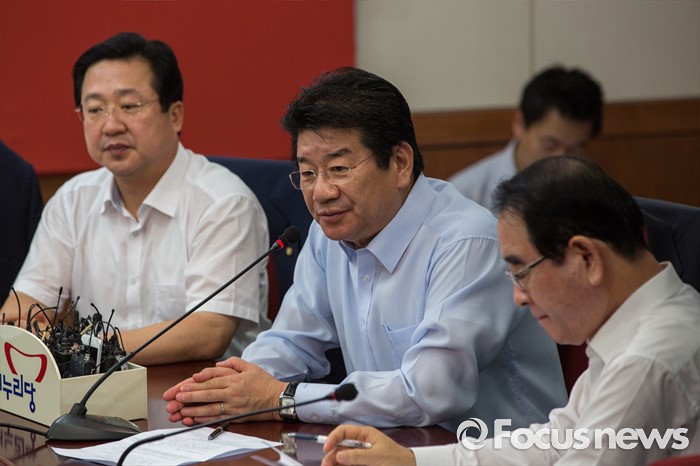 (서울=포커스뉴스) 강석호(가운데) 새누리당 최고위원이 10일 오전 서울 여의도 새누리당사에서 열린 최고위원회의에 참석해 모두발언 하고 있다.