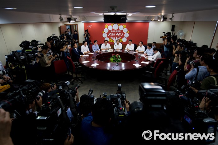 (서울=포커스뉴스) 정진석 새누리당 원내대표가 10일 오전 서울 여의도 새누리당사에서 열린 최고위원회의에 참석해 모두발언 하고 있다.