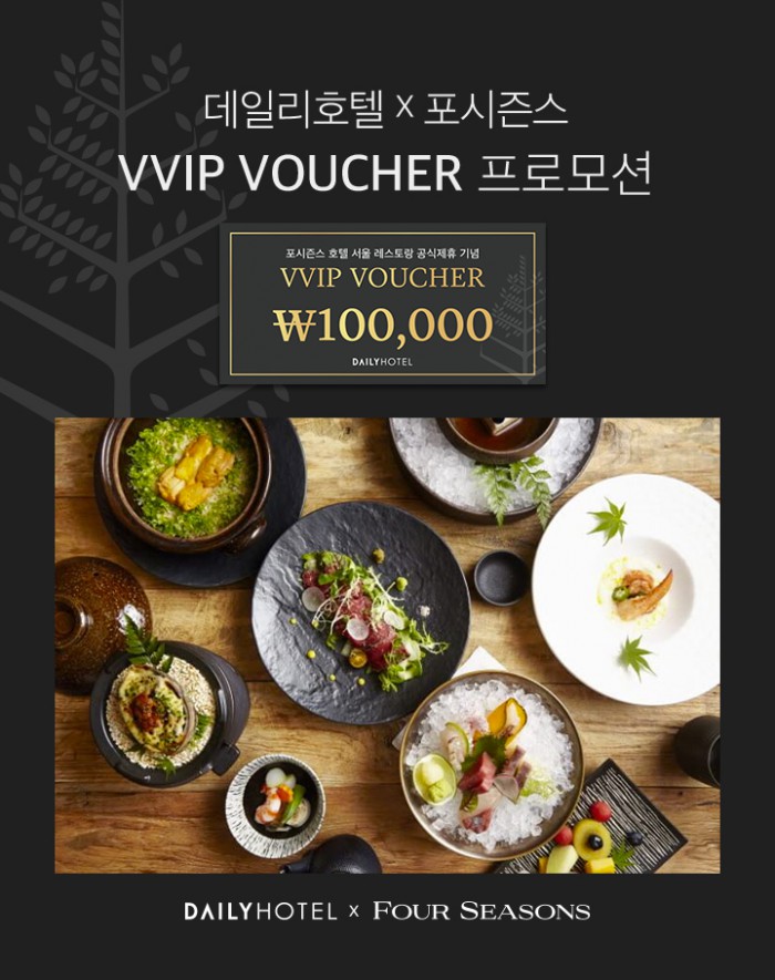 'VVIP 바우처 프로모션'은 데일리호텔 앱으로 포시즌스 호텔 레스토랑·카페 상품을 구매한 이들에게 포시즌스 호텔 객실 예약 시 10만원 할인받을 수 있는 쿠폰을 증정하는 행사다.