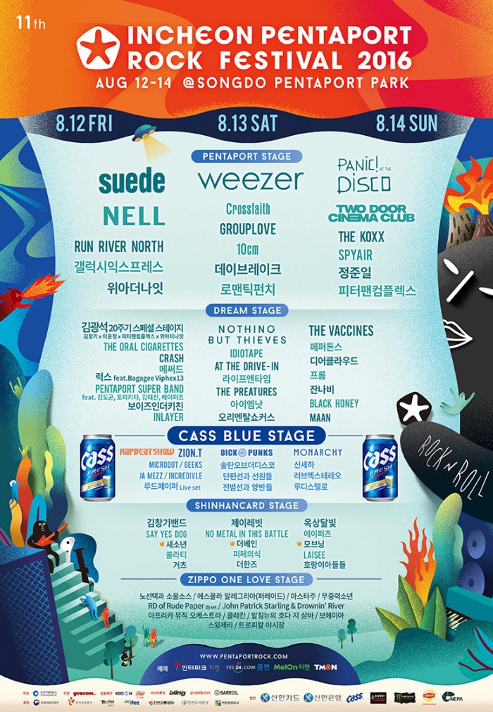 '인천 펜타포트 락 페스티벌'은 국내 최대 음악 축제다. 11회째인 올해는 오는 12~14일 3일간 인천 송도국제도시 달빛축제공원에서 열린다. 특히 스웨이드, 투 도어 시네마 클럽, 패닉 엣 더 디스코, 위저, 넬, 데이브레이크, 십센치, 이디오테잎, 옥상달빛 등 국내외 유명 아티스트 80여 팀이 참여해 더욱 기대를 모으고 있다.