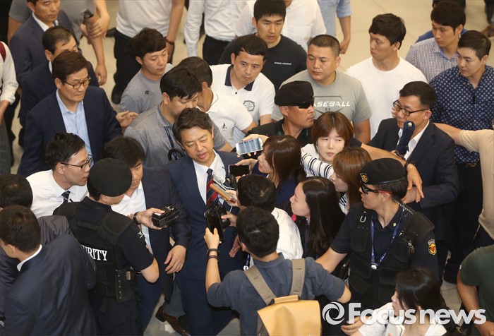 (인천공항=포커스뉴스) 사드배치에 반발하는 중국 측 입장을 듣기 위해 중국을 방문한 김영호(가운데) 더불어민주당 의원이 10일 오후 인천국제공항을 통해 귀국하고 있다.