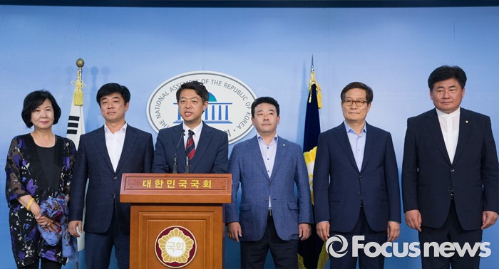 (서울=포커스뉴스) 방중을 마치고 귀국한 더불어민주당 초선 의원들이 10일 오후 서울 여의도 국회 정론관에서 기자회견을 하고 있다. 왼쪽부터 손혜원, 김병욱, 김영호, 박정, 신동근, 소병훈 의원.