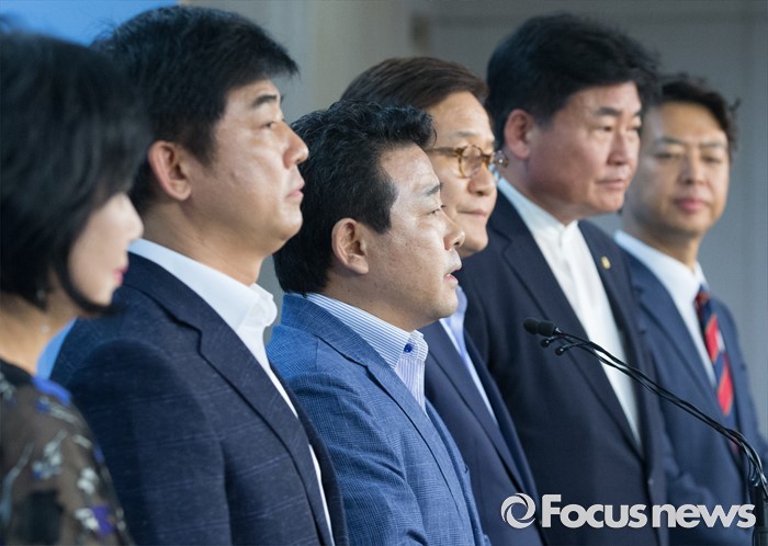 (서울=포커스뉴스) 방중을 마치고 귀국한 더불어민주당 초선 의원들이 10일 오후 서울 여의도 국회 정론관에서 기자회견을 하고 있다. 왼쪽부터 손혜원, 김병욱, 박정, 신동근, 김영호, 소병훈 의원.