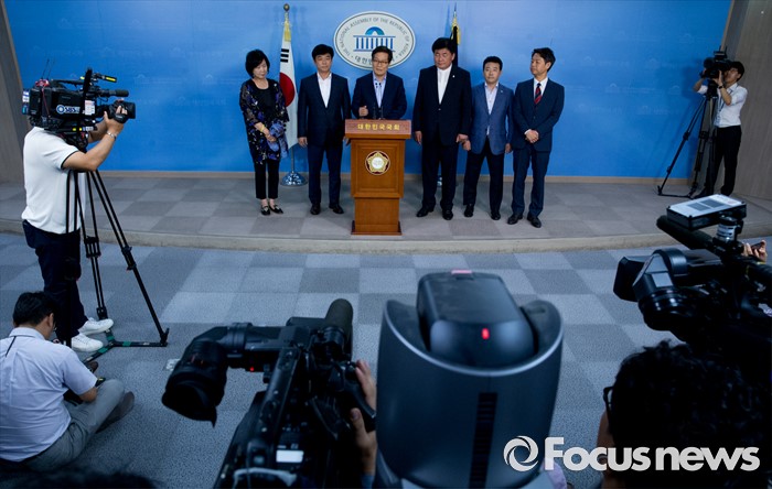 (서울=포커스뉴스) 방중을 마치고 귀국한 더불어민주당 초선 의원들이 10일 오후 서울 여의도 국회 정론관에서 기자회견을 하고 있다. 왼쪽부터 손혜원, 김병욱, 신동근, 소병훈, 박정, 김영호 의원.