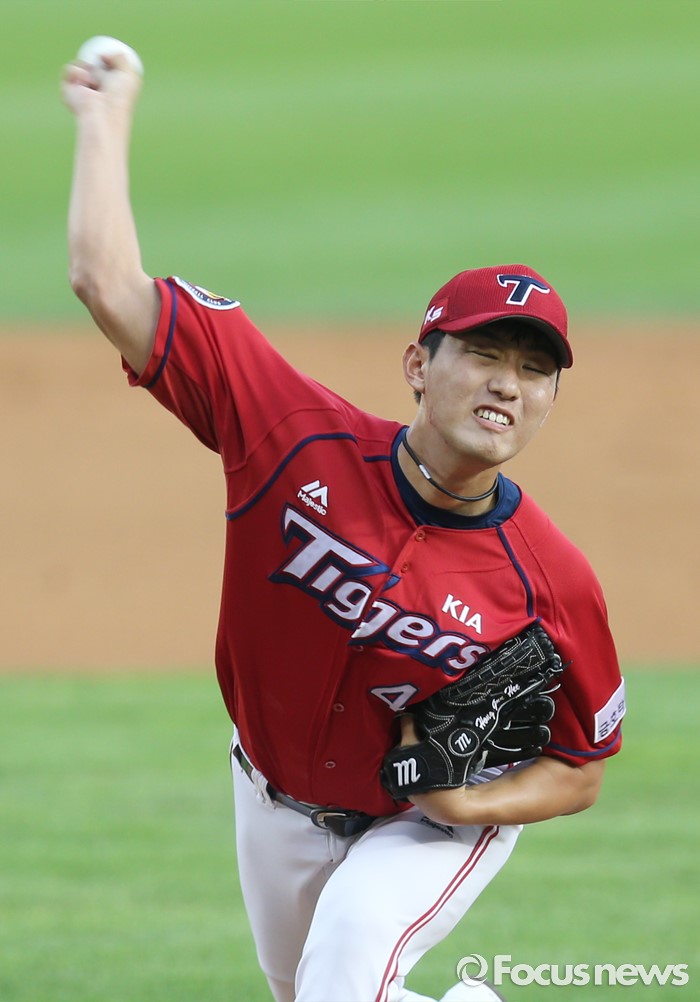 (서울=포커스뉴스) 10일 서울 잠실구장에서 열린 2016 프로야구 KIA-두산 경기에서 1회말 KIA 선발투수 홍건희가 투구하고 있다.