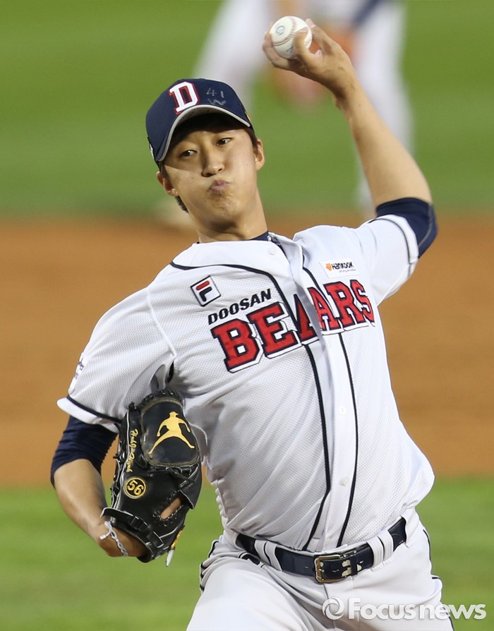 (서울=포커스뉴스) 10일 서울 잠실구장에서 열린 2016 프로야구 KIA-두산 경기 3회초 1사 1,3루에서 두산 투수 허준혁이 구원 등판해 투구하고 있다.