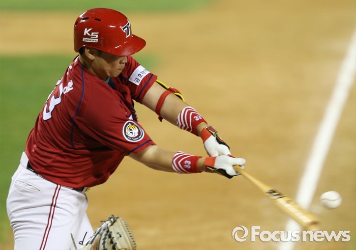 (서울=포커스뉴스) 10일 서울 잠실구장에서 열린 2016 프로야구 KIA-두산 경기 5회초 1사후 KIA 김주형이 타격하고 있다.