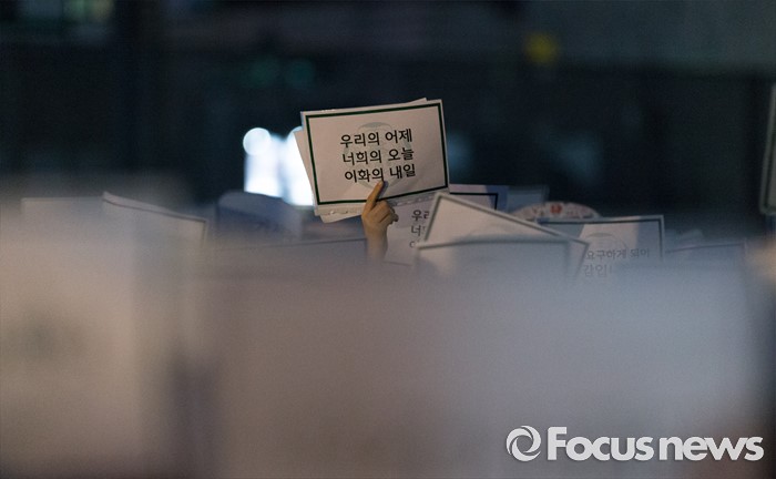 (서울=포커스뉴스) 10일 오후 서울 서대문구 이화여대에서 재학생 및 졸업생들이 최경희 총장의 사퇴를 요구하며 대규모 시위를 하고 있다.