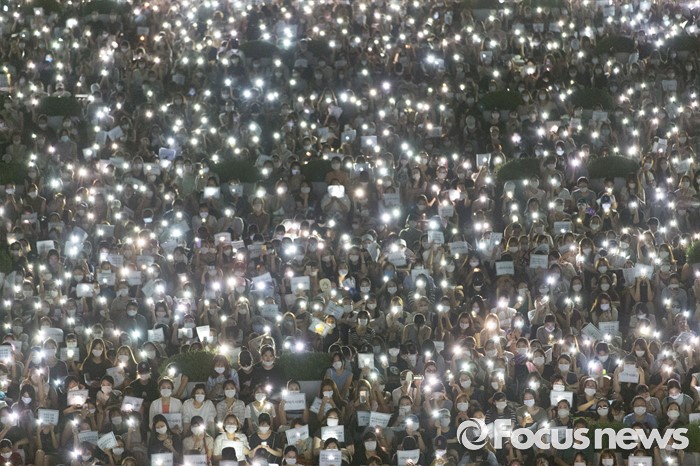 (서울=포커스뉴스) 10일 오후 서울 서대문구 이화여대에서 재학생 및 졸업생들이 최경희 총장의 사퇴를 요구하며 대규모 시위를 하고 있다.