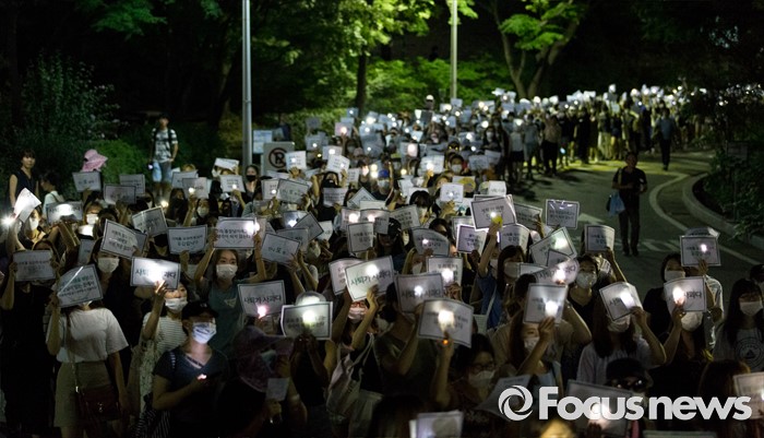 (서울=포커스뉴스) 10일 오후 서울 서대문구 이화여대에서 재학생 및 졸업생들이 최경희 총장의 사퇴를 요구하며 행진을 하고 있다.