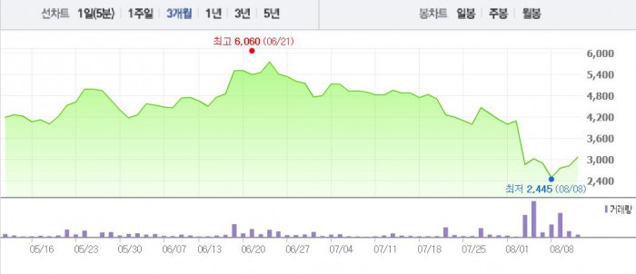 이씨는 지난 2014년 10월부터 올해 4월까지 허위 공시를 통해 보타바이오 주가를 부풀린 혐의를 받고 있다. 이후 이씨는 주식을 매각해 40억원을 챙긴 것으로 알려졌다.주가흐름<사진출처=네이버 캡쳐>