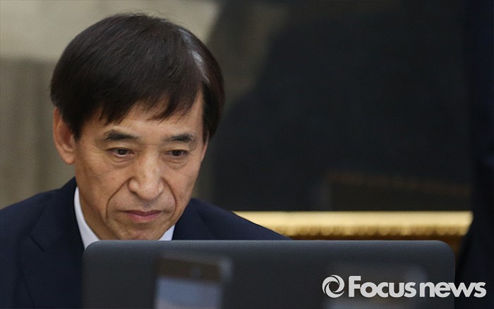 (서울=포커스뉴스) 11일 오전 서울 중구 한국은행에서 열린 제15차 금융통화위원회에 참석한 이주열 한국은행 총재가 생각에 잠겨 있다.