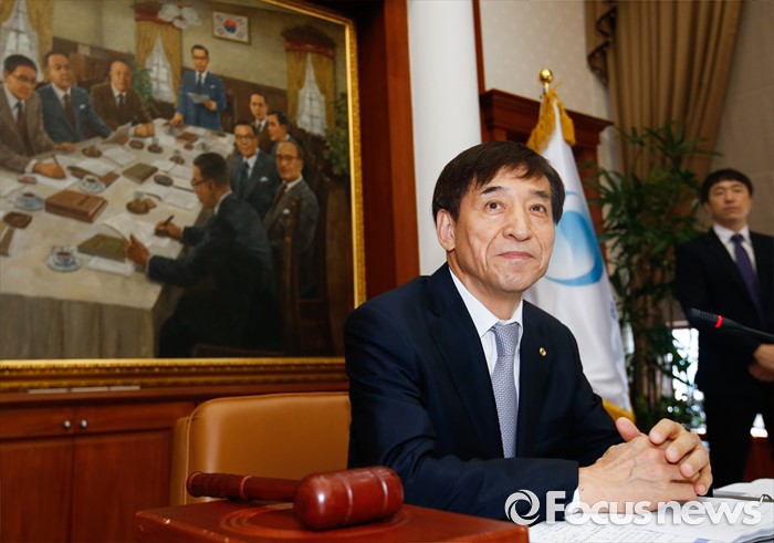 (서울=포커스뉴스) 11일 오전 서울 중구 한국은행에서 열린 제16차 금융통화위원회에 참석한 이주열 한국은행 총재가 회의 시작 전 취재진을 바라보고 있다.