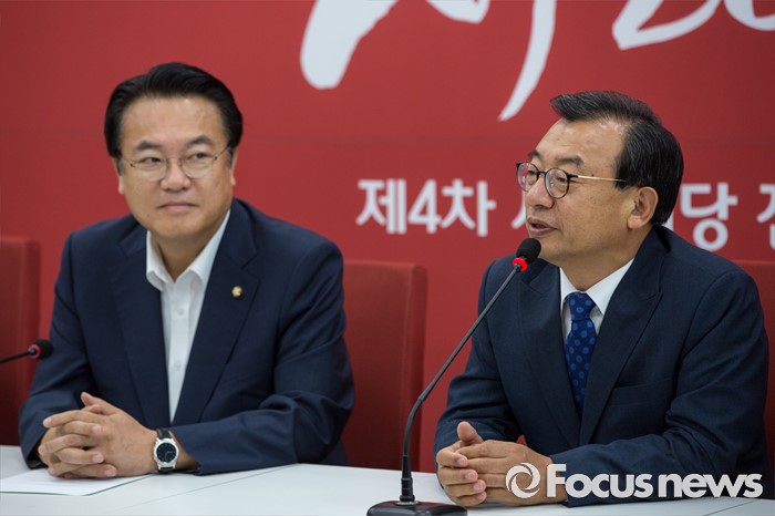 (서울=포커스뉴스) 이정현 새누리당 대표가 11일 오전 서울 여의도 국회에서 열린 최고위원회의에 참석해 취재진에게 지도부를 비롯한 최고위원의 모두발언 공개 없이 비공개 회의로 전환한다고 설명 하고 있다.