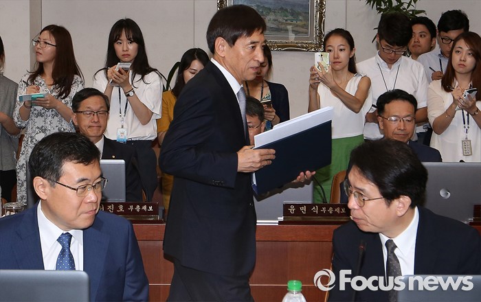 (서울=포커스뉴스) 이주열 한국은행 총재가 11일 오전 서울 중구 한국은행에서 열린 제15차 금융통화위원회에 참석하고 있다.