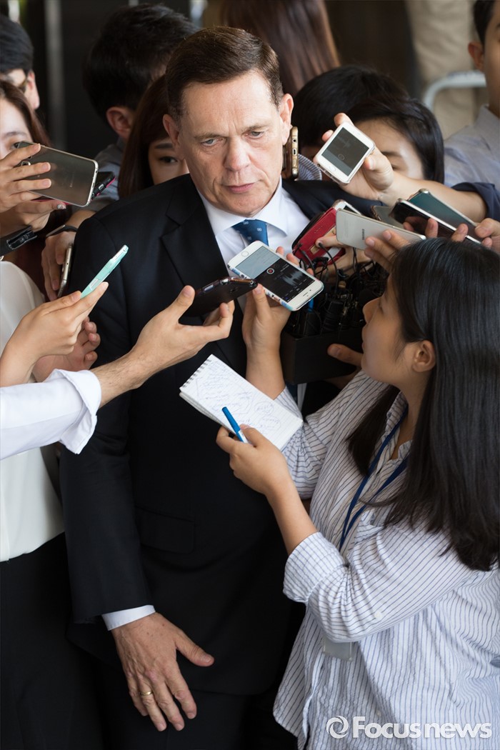 (서울=포커스뉴스) 폭스바겐 배출가스 조작 의혹을 받고 있는 요하네스 타머 아우디폭스바겐코리아 총괄사장이 11일 오전 서울 서초구 서울중앙지검으로 출석해 취재진의 질문을 받고 있다.