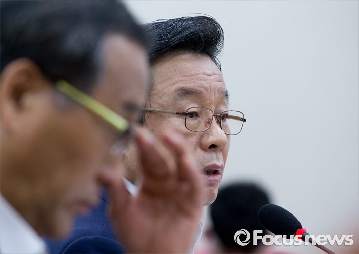 (서울=포커스뉴스) 11일 오전 서울 여의도 국회에서 열린 안전행정위원회 전체회의에 참석한 박인용 국민안전처 장관이 의원들의 질의에 답하고 있다. 왼쪽은 홍윤식 행정자치부 장관.