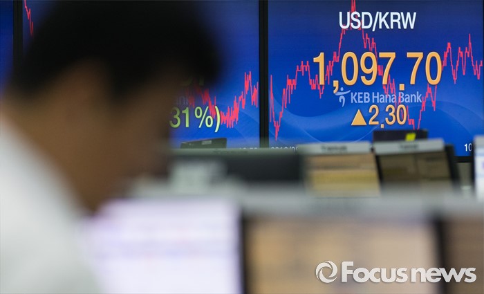 (서울=포커스뉴스) 11일 오전 서울 중구 KEB 하나은행 딜링룸에서 한 딜러가 업무를 보고 있다.