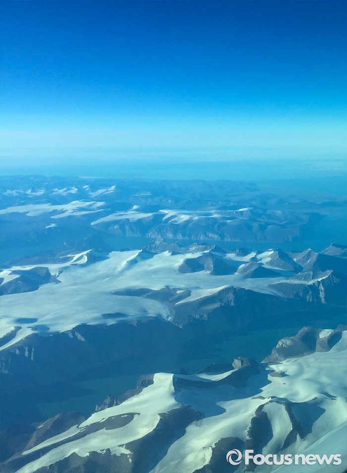 (서울=포커스뉴스) 연일 기록적인 무더위가 전국에 이어지는 가운데 10일(현지시각) 그린란드 상공에서 바라본 빙하로 잠시 무더위를 식히는 상상에 빠져 본다. <사진=독자제공>