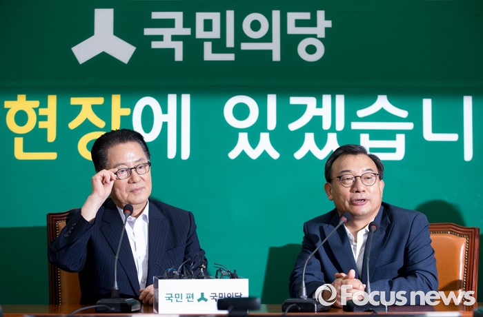 (서울=포커스뉴스) 11일 오후 서울 여의도 국회에서 박지원(왼쪽) 국민의당 비상대책위원장이 이정현(가운데) 새누리당 대표와의 면담을 하고 있다.