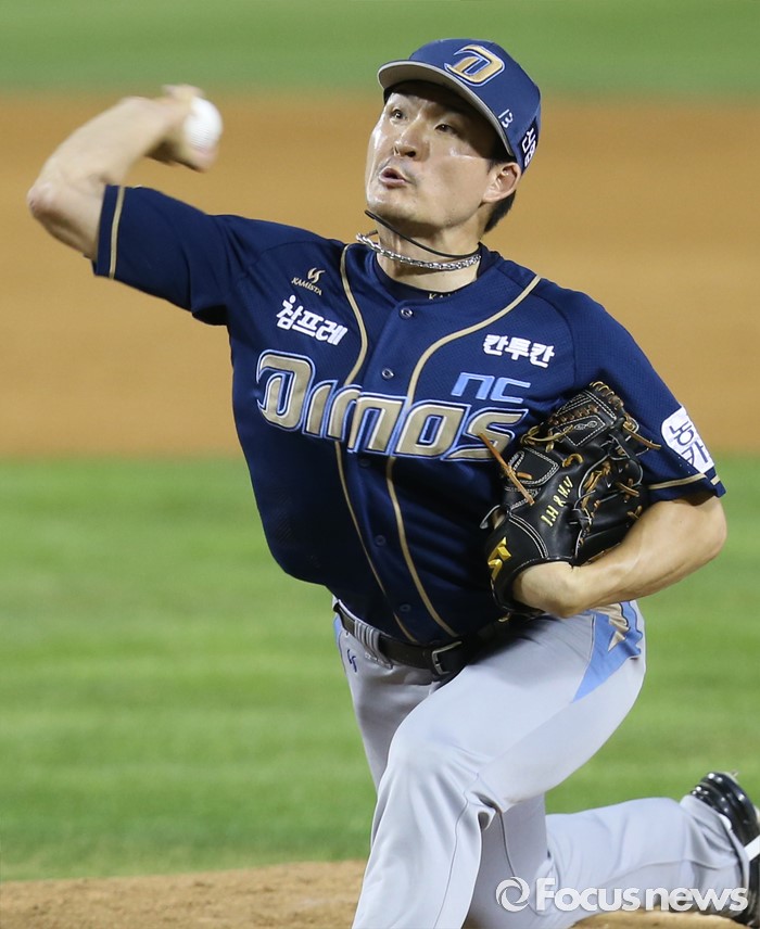 (서울=포커스뉴스) 11일 서울 잠실구장에서 열린 2016 프로야구 NC-LG 경기 6회말 NC 투수 원종현이 등판해 투구하고 있다.