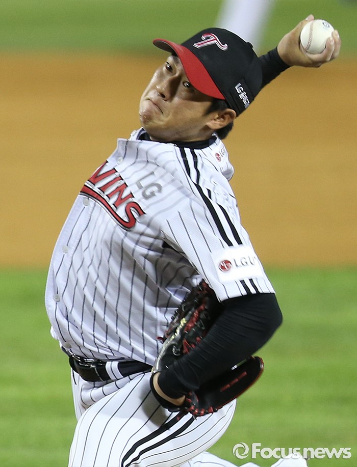 (서울=포커스뉴스) 11일 서울 잠실구장에서 열린 2016 프로야구 NC-LG 경기 7회초 1사 1,3루에서 LG 투수 김지용이 구원 등판해 투구하고 있다.